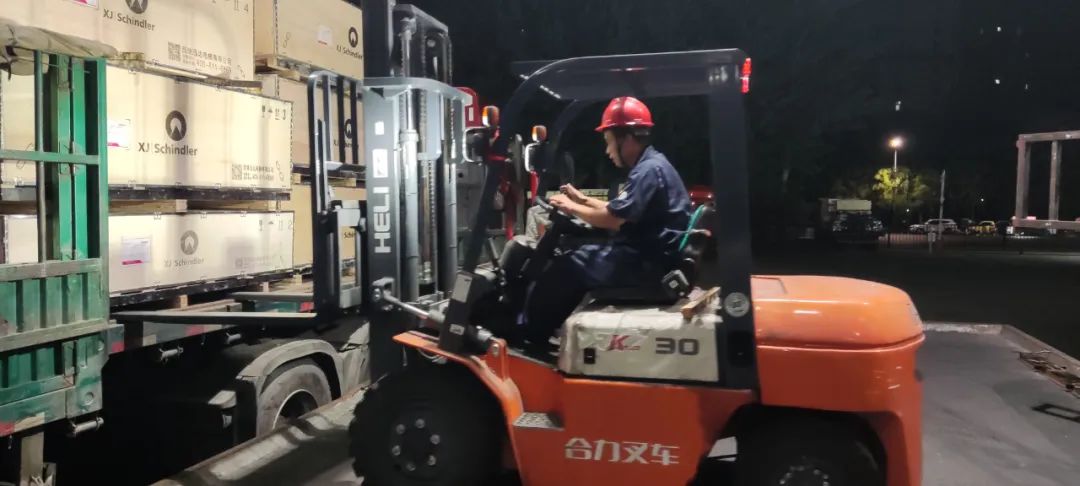 深夜,滿載貨物的車輛蓄勢(shì)待發(fā),正在做發(fā)貨前的各項(xiàng)準(zhǔn)備工作,力爭(zhēng)以最快的速度把電梯設(shè)備運(yùn)送至安裝現(xiàn)場(chǎng)。