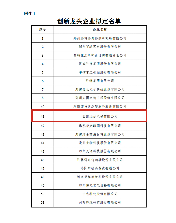 12月22日,河南省科技廳官網(wǎng)發(fā)布《關(guān)于2021年河南省創(chuàng)新龍頭企業(yè)和“瞪羚”企業(yè)擬定名單》,西繼迅達(dá)電梯榜上有名,被省科技廳認(rèn)定為河南省創(chuàng)新龍頭企業(yè)。公司曾在2017年11月被首批認(rèn)定為省創(chuàng)新龍頭企業(yè),憑借著精彩表現(xiàn),今年西繼迅達(dá)再次榮獲此項(xiàng)殊榮。