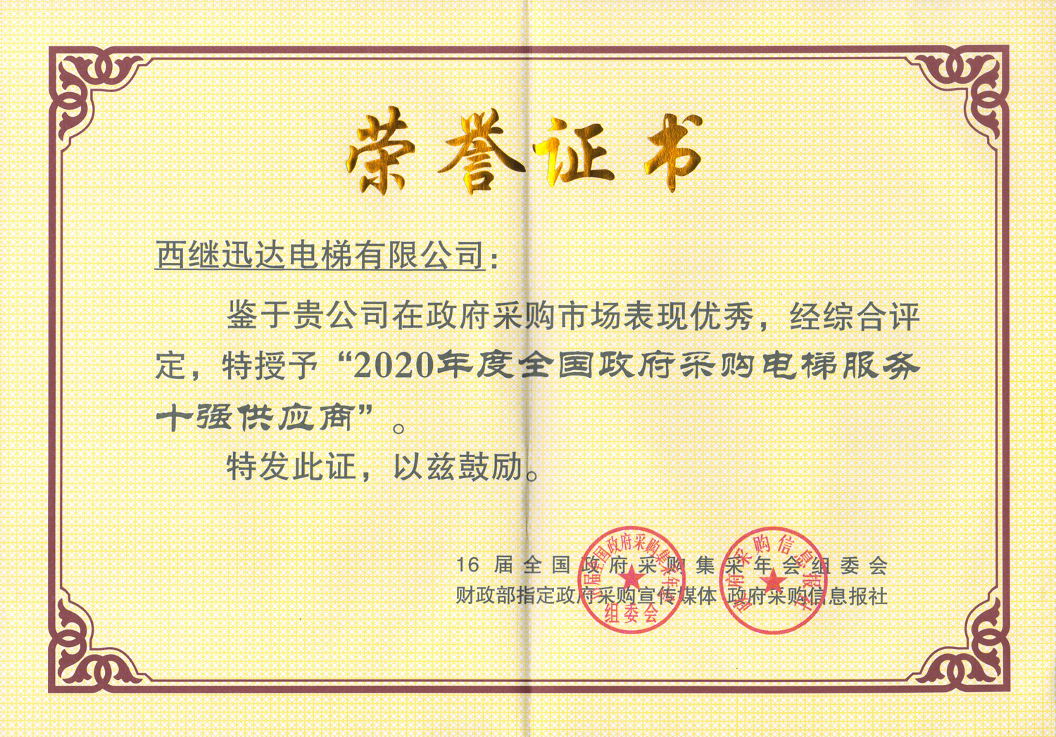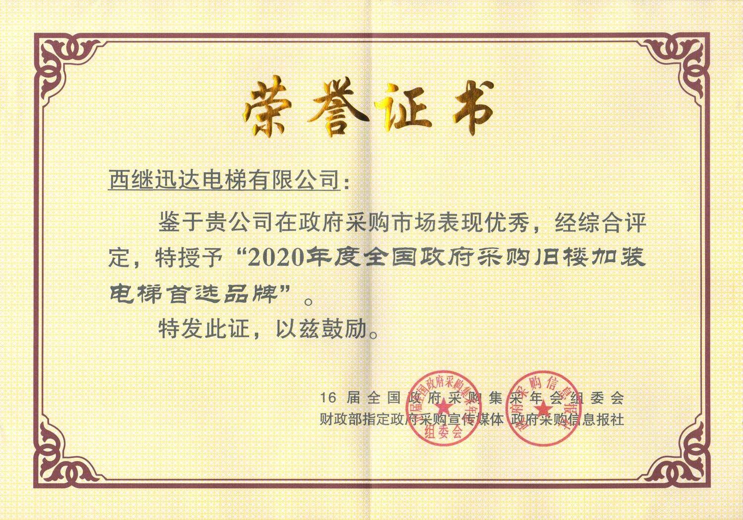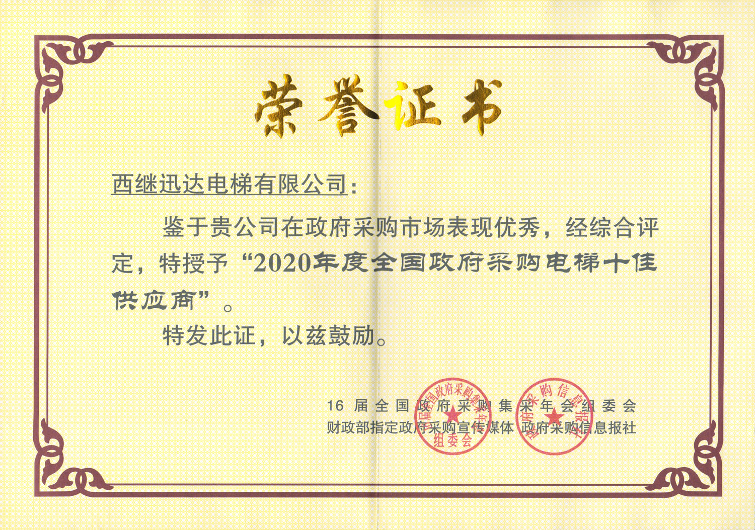1月21日,備受電梯行業矚目的全國政府采購電梯優秀供應商評選結果,在北京重磅揭曉。西繼迅達電梯憑借卓越表現,獲得2020年度“全國政府采購電梯十佳供應商”、“全國政府采購電梯服務十強供應商”、“全國政府采購舊樓加裝電梯首選品牌”等三項行業大獎。