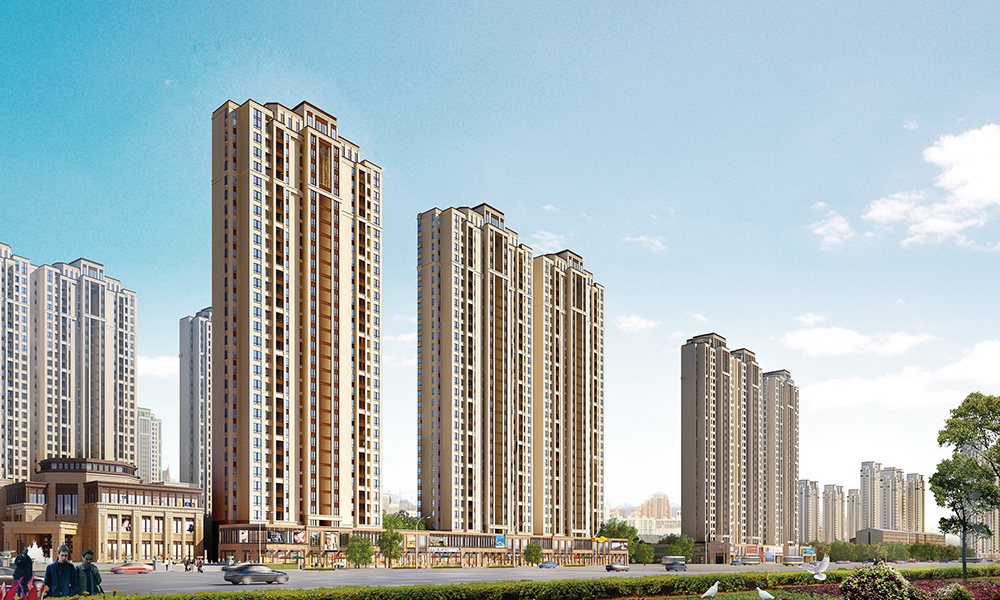 該項目總建筑面積為920000平方米,總占地面積為260000平方米。小區的綠化率為35%,容積率為2.8。