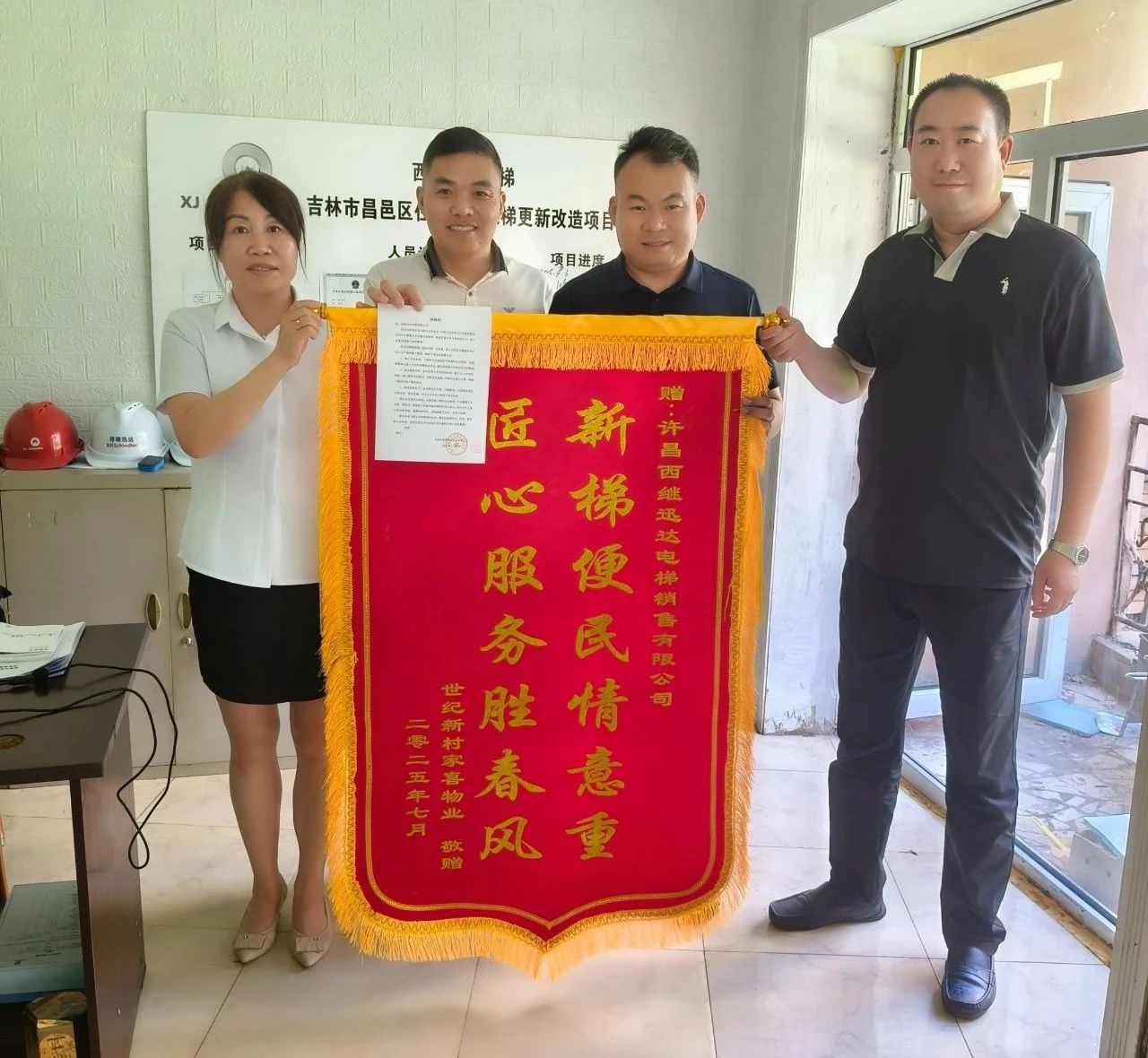 自進場以來,公司對該項目高度重視。此次舊梯換新梯工程時間緊、任務重,公司團隊以精湛的技術實力與嚴謹的施工管理,確保了項目高質量完成;施工專業高效,工程師與安裝團隊嚴格遵守安全規范,實施精細化作業,最大限度減少對居民生活的影響;項目負責人全程駐場協調,建立24小時響應機制,耐心解答居民疑問,積極優化施工方案;后續維保團隊定期巡檢、響應迅速。公司不僅贏得了業主的一致好評,更彰顯了品牌的擔當與實力。在項目中展現出的卓越專業素養、高度負責態度與高效執行力,獲得客戶的高度贊賞。充分體現了公司員工高效專業的精神面貌以及深厚的企業文化內涵。
