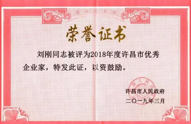 西繼迅達喜獲市政府50萬元獎勵 總經理劉剛榮膺“許昌市優秀企業家”殊榮