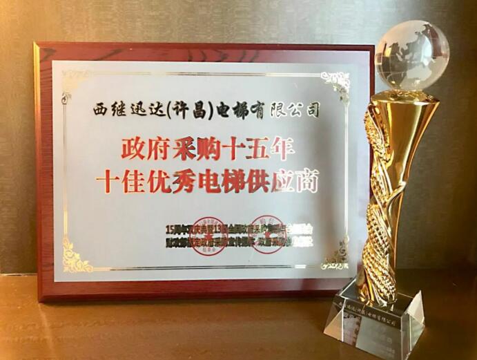 西繼迅達榮膺“政府采購15年十佳優秀電梯供應商”殊榮